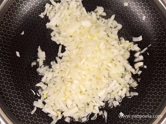 Лук нарезаем мелко, помешивая обжариваем до легкой золотистости на небольшом количестве оливкового масла.