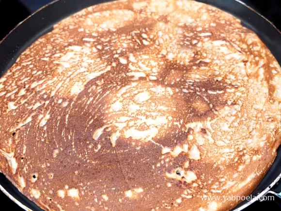 Смазываем растительным маслом. На хорошо разогретую сковороду выливаем небольшое количество печеночного теста, распределим по всей поверхности. Когда поверхность блина станет матовой, переворачиваем на вторую сторону.