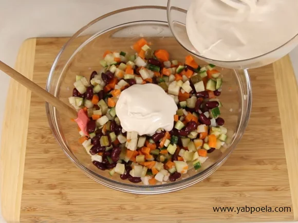 Вкусный сытный салат с красной фасолью, картофелем, солеными и свежими огурцами. В качестве заправки - домашний постный майонез. Блюдо аппетитное, выглядит ярко, отличная альтернатива салату оливье. Подойдет вегетарианцам, людям, которые придерживаются поста, или просто чтобы разнообразить стол с мясными блюдами.