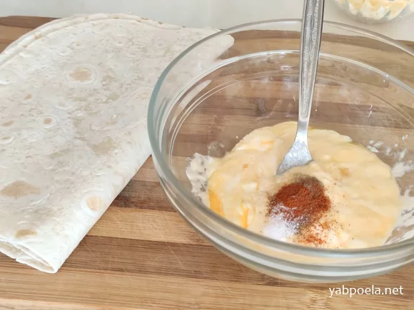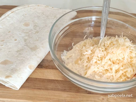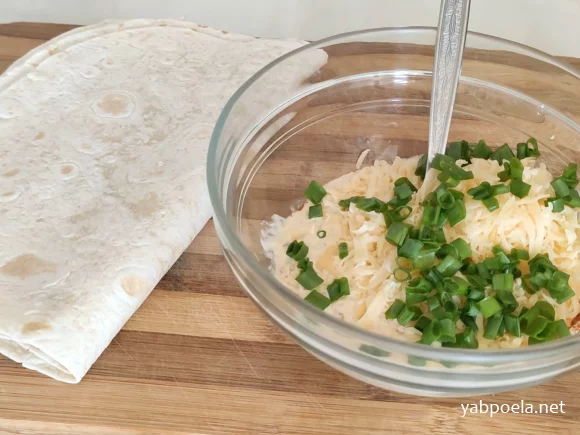 Разворачиваем лист лаваша. Смазываем получившейся сырной смесью.