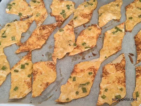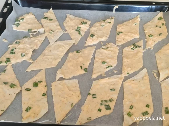Ароматные, золотистые чипсы из лаваша с сыром и луком готовы.