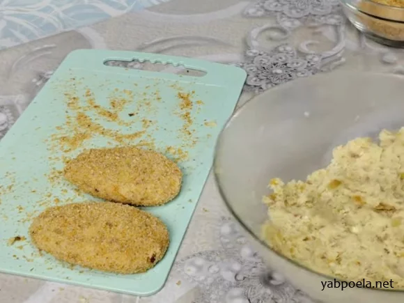 Смочите руки водой, чтобы фарш не лип, и сформируйте небольшие котлеты — не слишком крупные, так они прожарятся равномерно. Обваляйте каждую в панировочных сухарях (или муке).