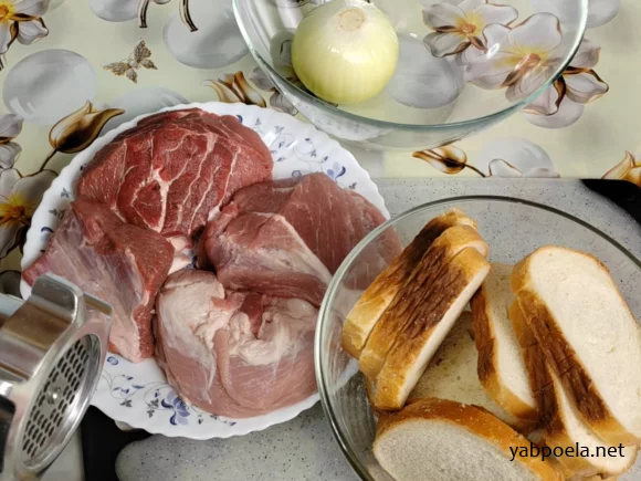 - Пропустите через мясорубку мясо и лук.