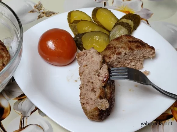 - Подавайте с любым гарниром (например, с солеными помидорами и огурцами). Котлеты получаются мягкие, вкусные и не жирные.