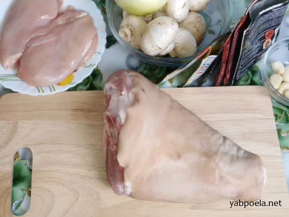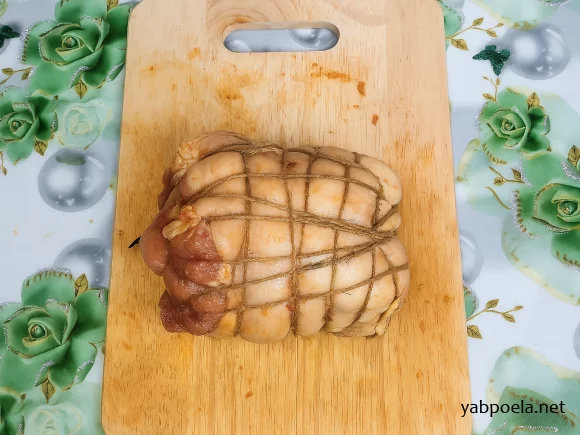 Рулет из свиной рульки с курицей и грибами (Праздничная ветчина)