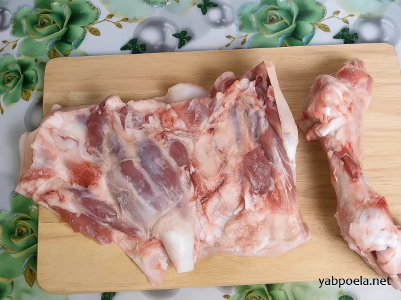 Ножом тщательно поскребите кожу, очистите и промойте рульку под проточной водой. Обсушите.