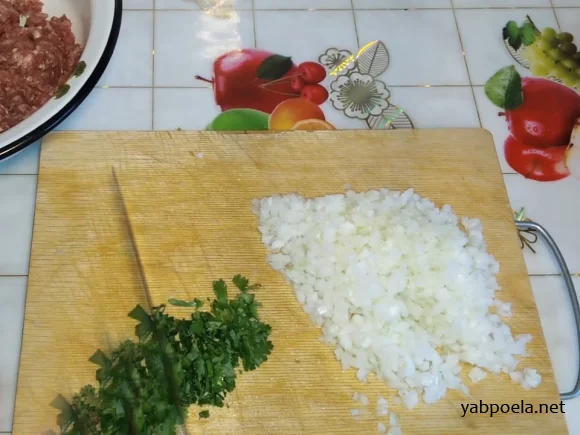 Нарежьте луковицу (80–100 г) как можно мельче (это важно для консистенции).