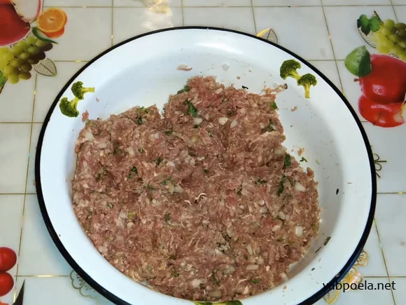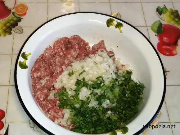 Возьмите 700 г фарша (свинина/говядина). Добавьте 0,5 ч. л. черного перца, немного красного острого перца, 0,5 ч. л. молотой зиры и 1 ч. л. соли.