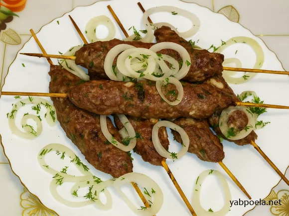 Люля-кебаб — сочное и ароматное восточное блюдо, которое легко приготовить дома, даже без мангала. Секрет его успеха в тщательно вымешанном фарше (смесь свинины и говядины) с добавлением зиры и кинзы. Благодаря интенсивному отбиванию мясо приобретает необходимую вязкость и остается сочным, не опадая со шпажек.