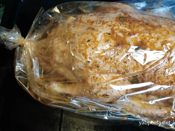Положите утку в пакет для запекания (или заверните в фольгу) грудкой вверх.