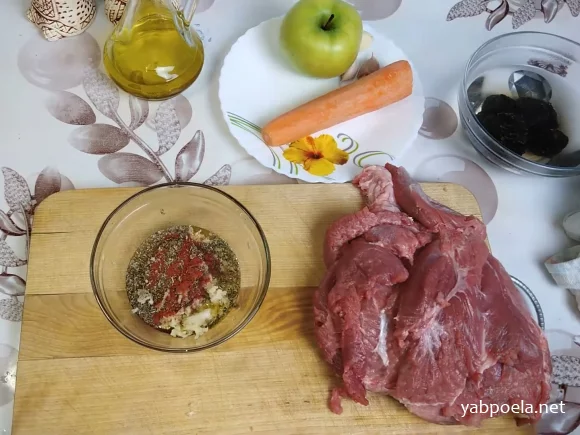 Оставшимся маринадом тщательно натрите мясо.