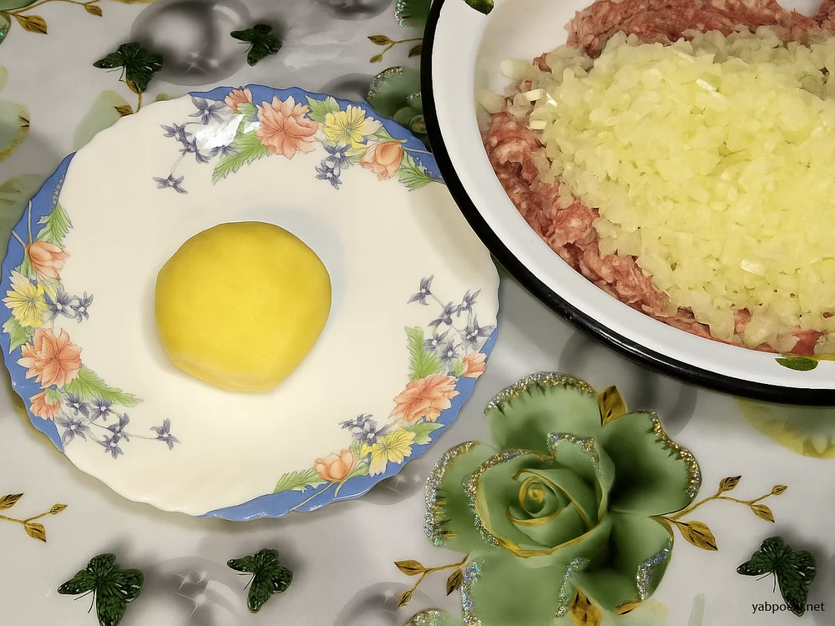 Подготовьте тарелку с мукой и досочку, присыпанную мукой. Поставьте миску с водой для рук.