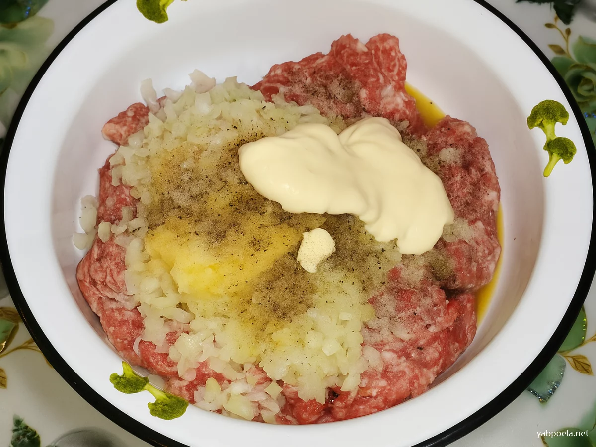 Смотрите по фаршу — он не должен быть слишком жидким. В рецепте ушло около 80 мл, осталось 20 мл.