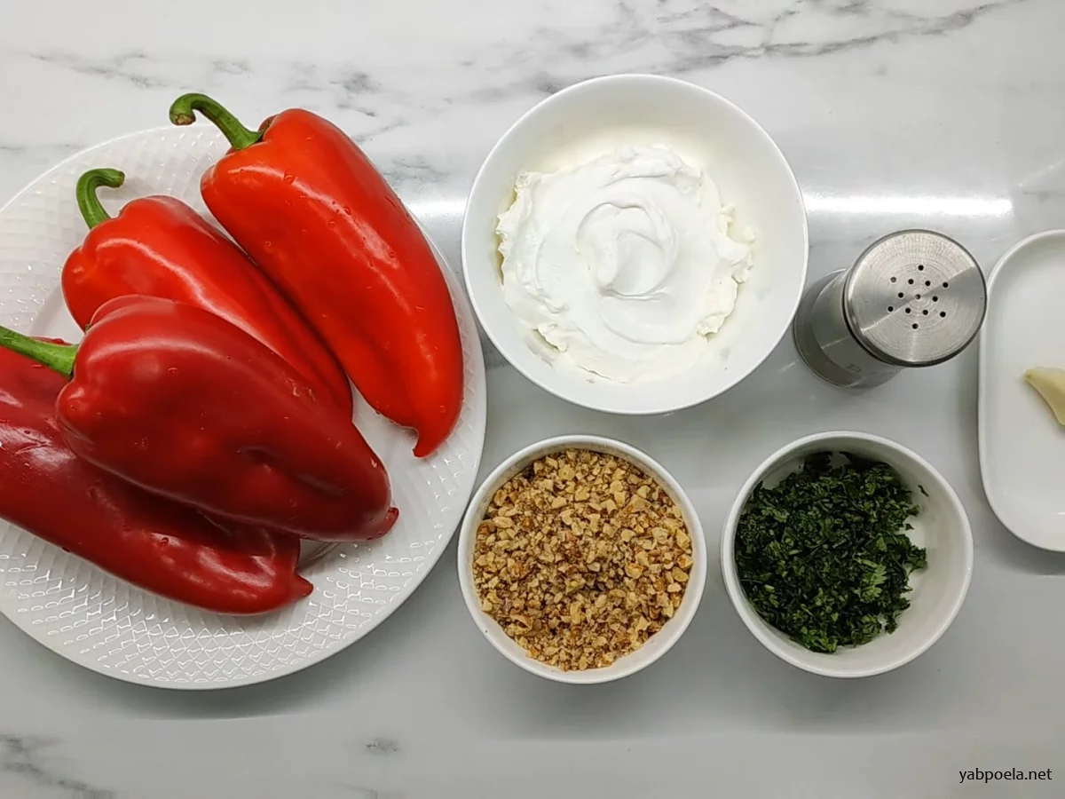 Рулетики из сладкого перца с сыром — это яркая и ароматная закуска, в которой запечённый перец идеально сочетается с очень вкусной нежной начинкой. Сливочный сыр соединяется с рублеными грецкими орехами, чесноком и свежей зеленью, создавая насыщенный, чуть пикантный вкус.