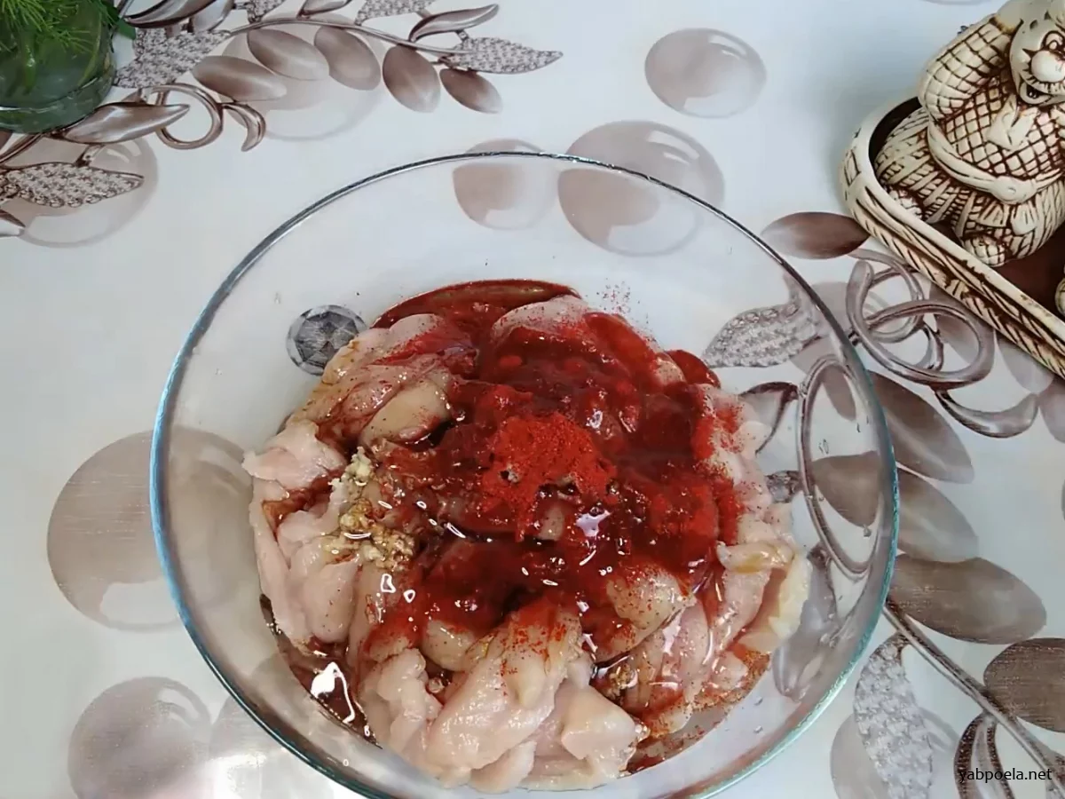 - Тщательно перемешайте и оставьте мариноваться, пока занимаетесь овощами (20–30 минут).
