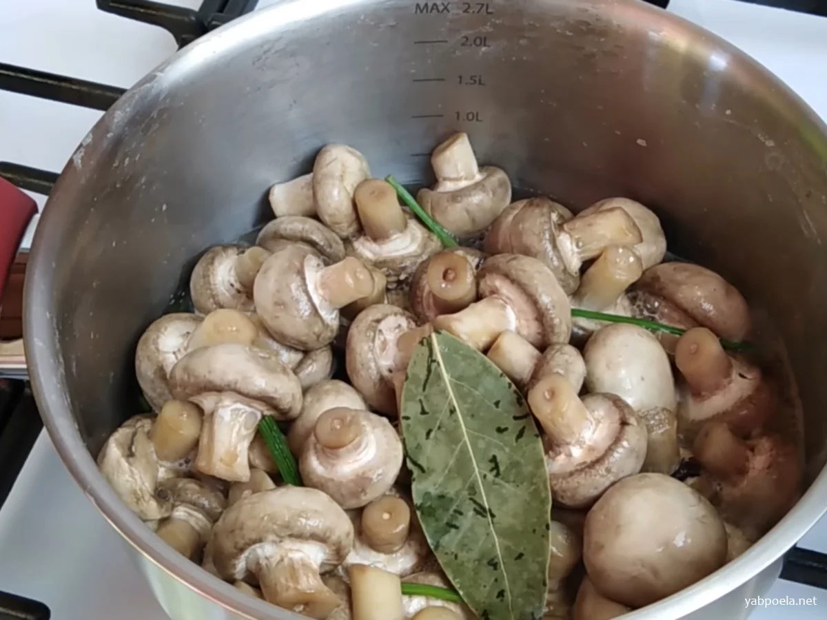 Совет: Жидкость, оставшуюся после варки, добавлять не нужно — грибам хватит заправки.