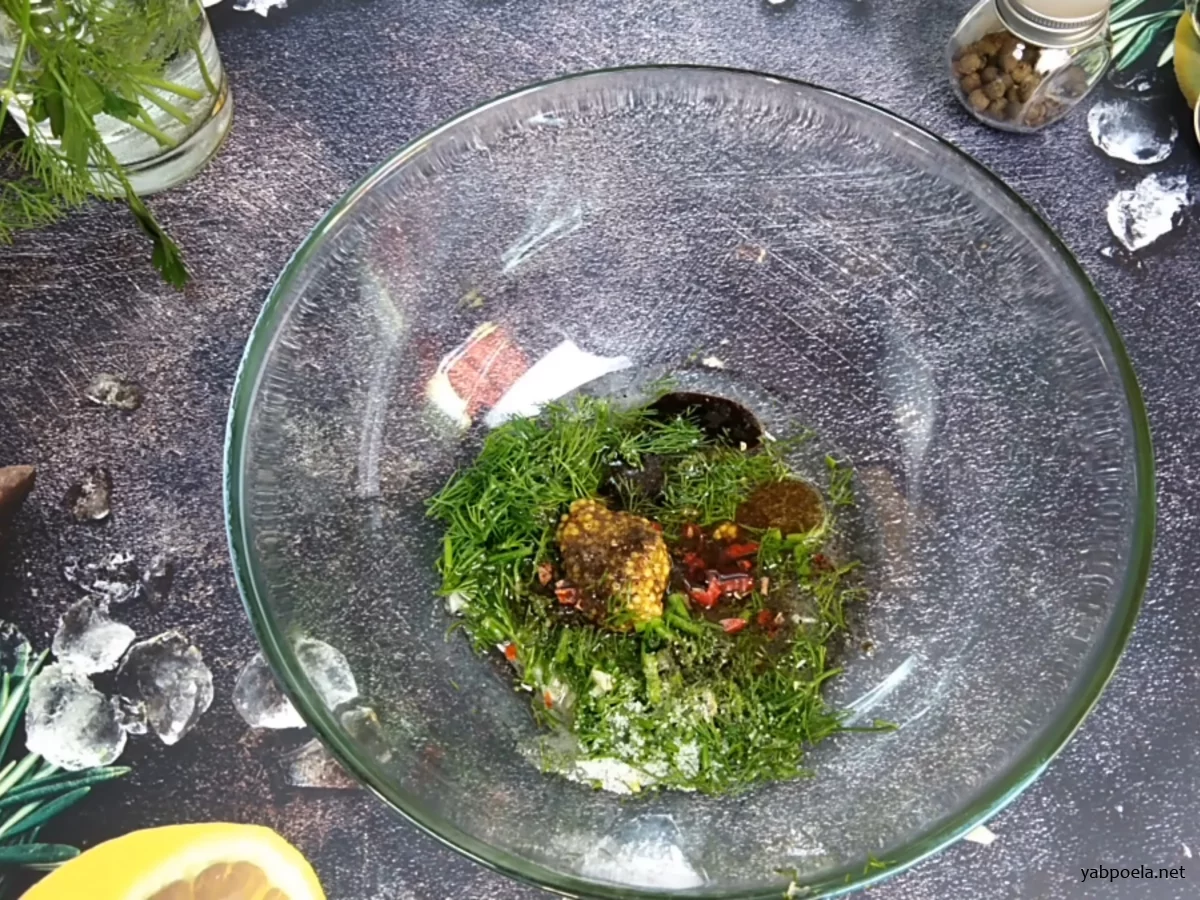 - Добавьте 4 ст. л. масла, 1 ст. л. соевого соуса, 2 ст. л. уксуса (или лимонного сока), 1 ч. л. сахара, 1 ч. л. зернистой горчицы и молотый перец.