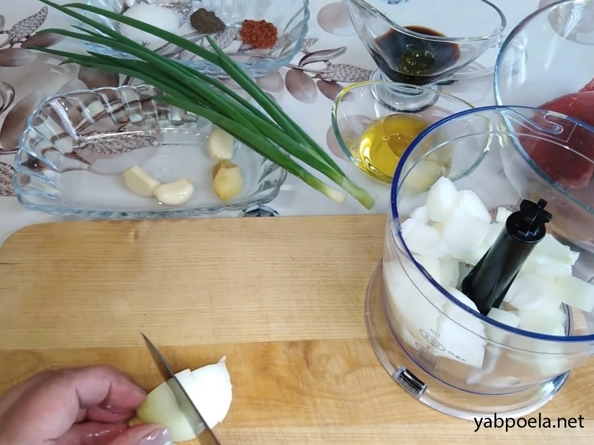 Совет: Можно просто мелко нарезать, но луковое пюре лучше размягчает волокна мяса.