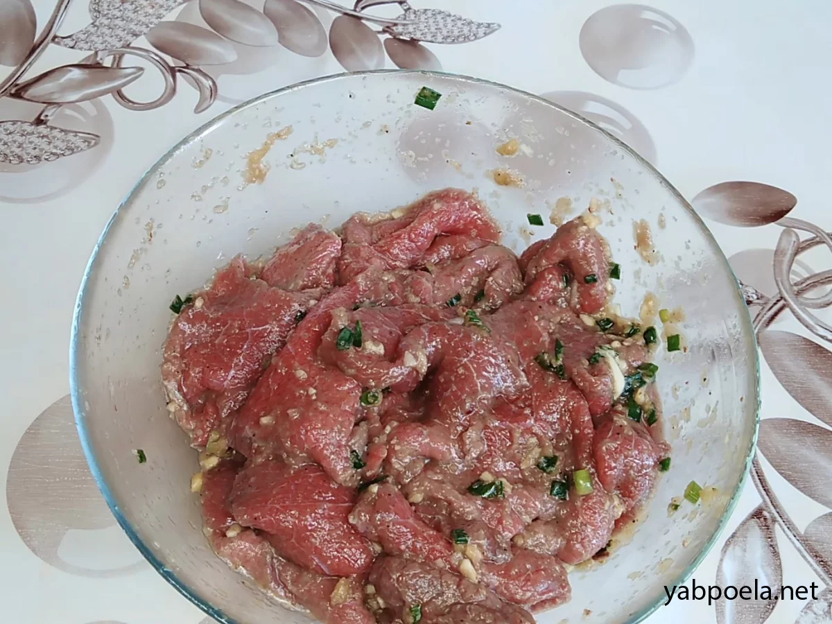- Важный момент: Перемешивайте мясо руками, делая легкий "массаж", чтобы каждый кусочек покрылся маринадом и разлепился (если был склеен после нарезки).
