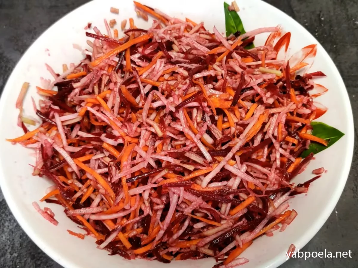 Салат с чёрной редькой, овощами и яблоком — это свежий, витаминный и очень бодрящий вариант полезного блюда. Хрустящая чёрная редька отлично сочетается с сочным яблоком, а сырые морковь и свёкла добавляют естественную сладость и яркий цвет. Лёгкая заправка из оливкового масла, лимонного сока и мёда мягко балансирует вкус и подчёркивает свежесть ингредиентов.