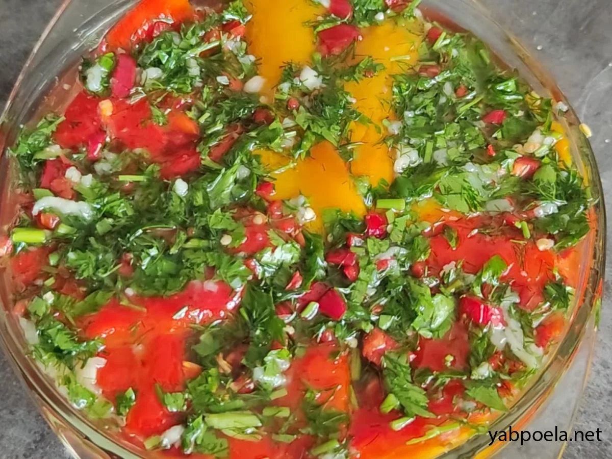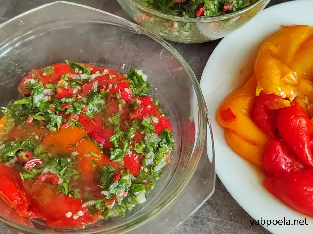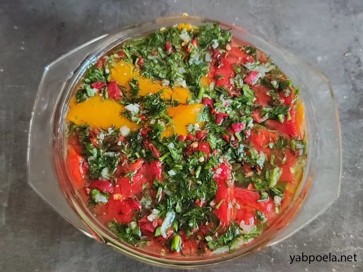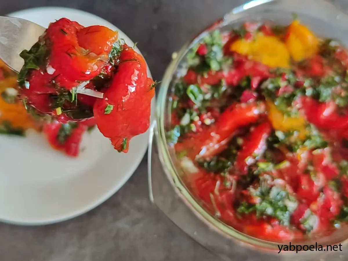 Укроп и петрушка добавляют свежесть, а маринад делает перцы сочными и очень ароматными.