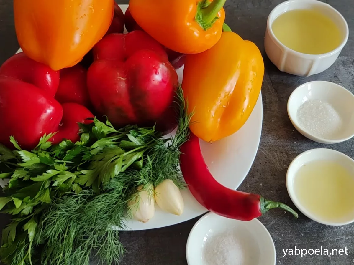 Для вкуснейших маринованных перцев подготовим необходимые продукты.