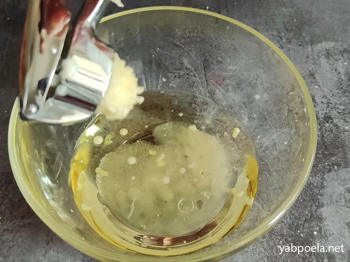 Выдавливаем чеснок. Перемешиваем, чтобы соль и сахар растворились.