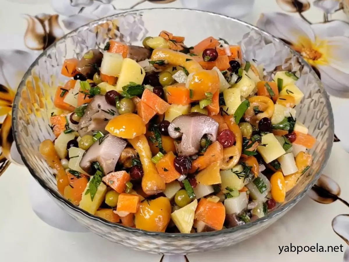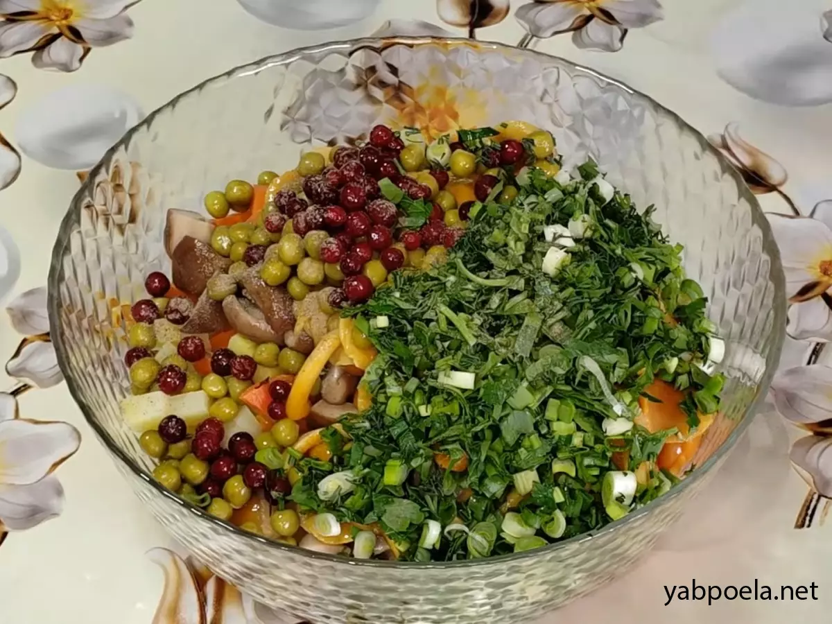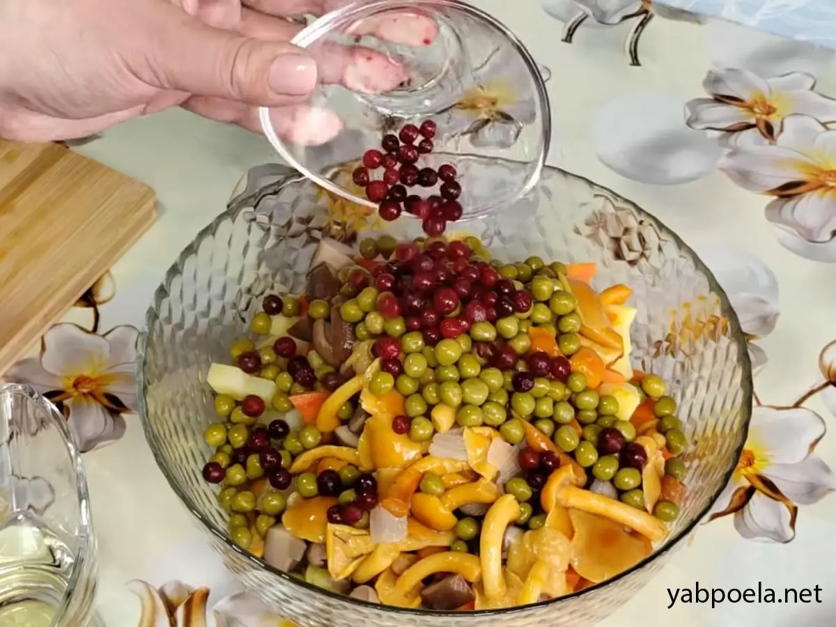 Яркий и полезный салат "Таежный" с грибами и клюквой
