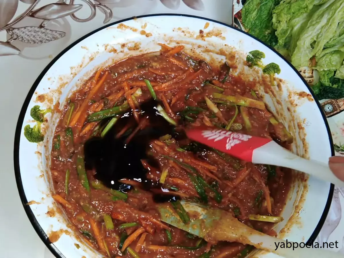 Добавьте в пасту острый перец (хлопья и молотый) и влейте 80–100 мл устричного соуса. Тщательно перемешайте пасту.