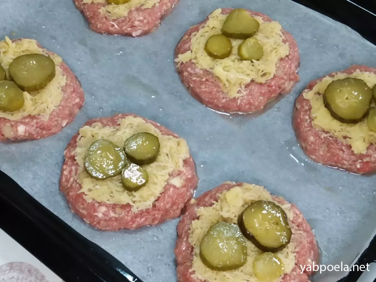 Этот рецепт — отличная альтернатива обычным котлетам. Благодаря «шапочке» из тёртого картофеля, пикантных огурчиков и сыра мясо получается невероятно сочным, а само блюдо выглядит празднично и не требует дополнительного гарнира. В народе такие котлеты часто называют «Стожки», и они всегда пользуются успехом.