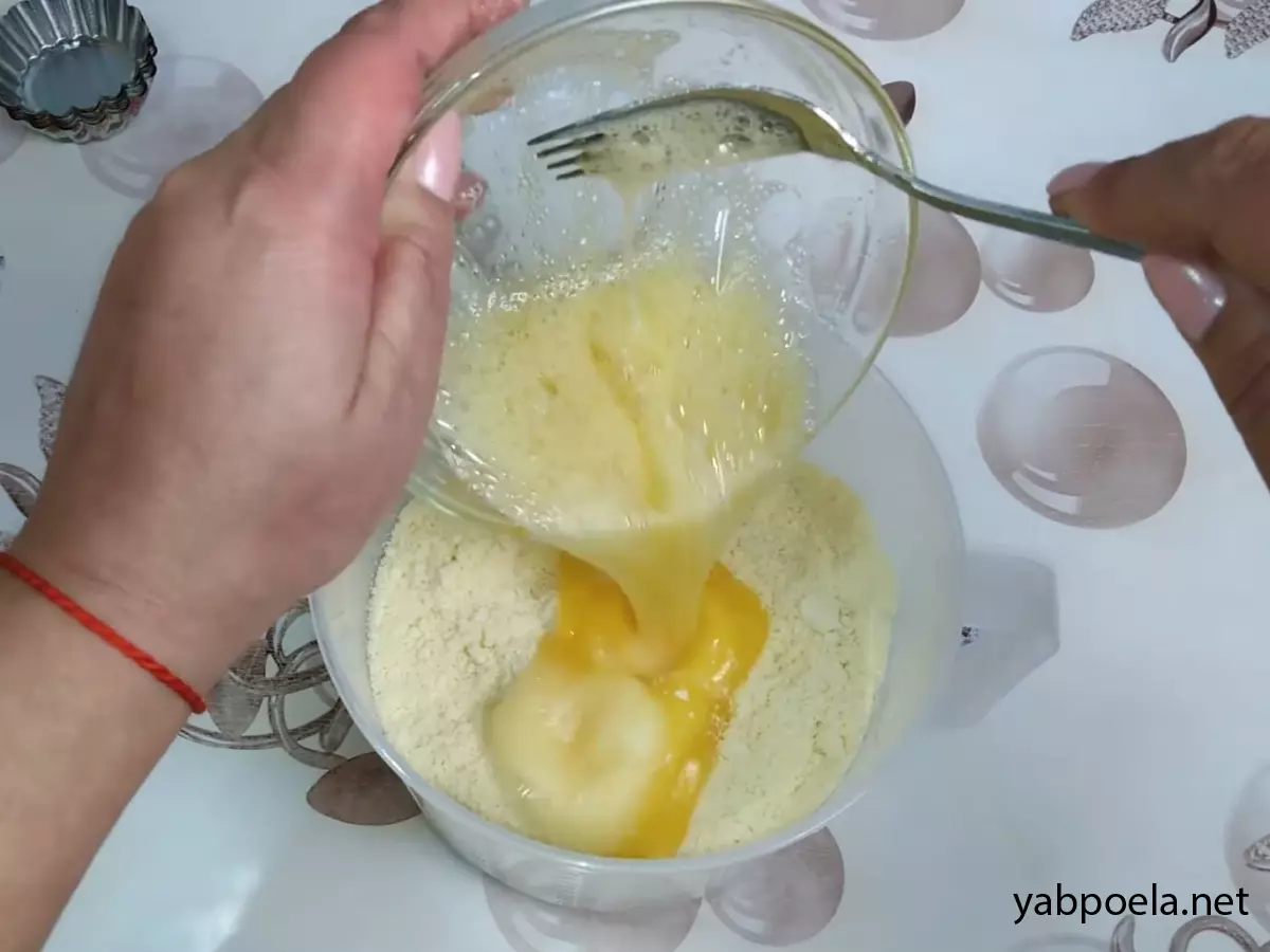 Влейте яичную массу в масляно-мучную крошку. Быстро соберите тесто в единый комок.