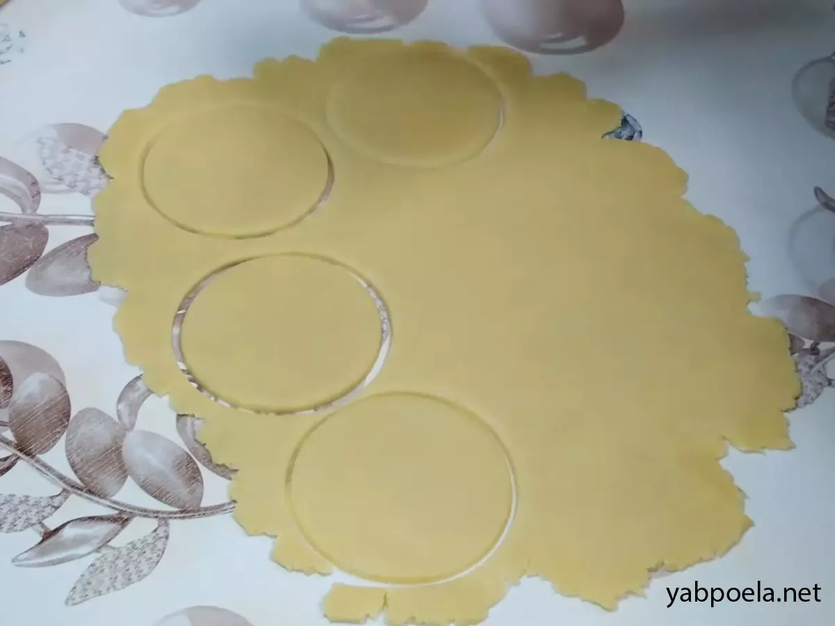Охлажденное тесто раскатайте в пласт толщиной 3–4 мм. Для удобства используйте пергамент или пленку. Вырежьте круги диаметром чуть больше, чем ваши формочки.