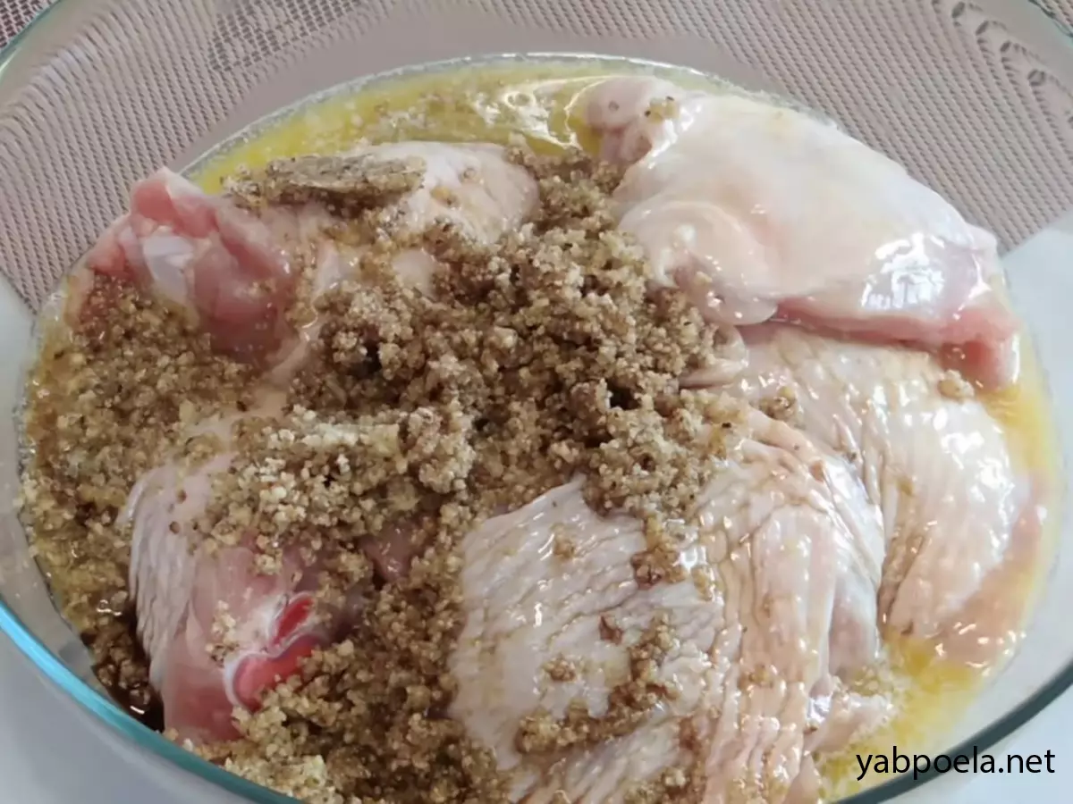 Важный этап: Оставьте курицу мариноваться минимум на 1 час (можно подготовить заранее и оставить в холодильнике на несколько часов). Это сделает мясо сочным и ароматным.
