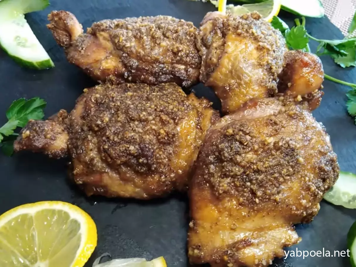 Главная изюминка этого рецепта — маринад. Грецкие орехи не нужно измельчать в пасту, небольшие кусочки придают блюду приятную текстуру. Сливочное масло делает мясо очень нежным, а соевый соус обеспечивает красивый карамельный цвет.