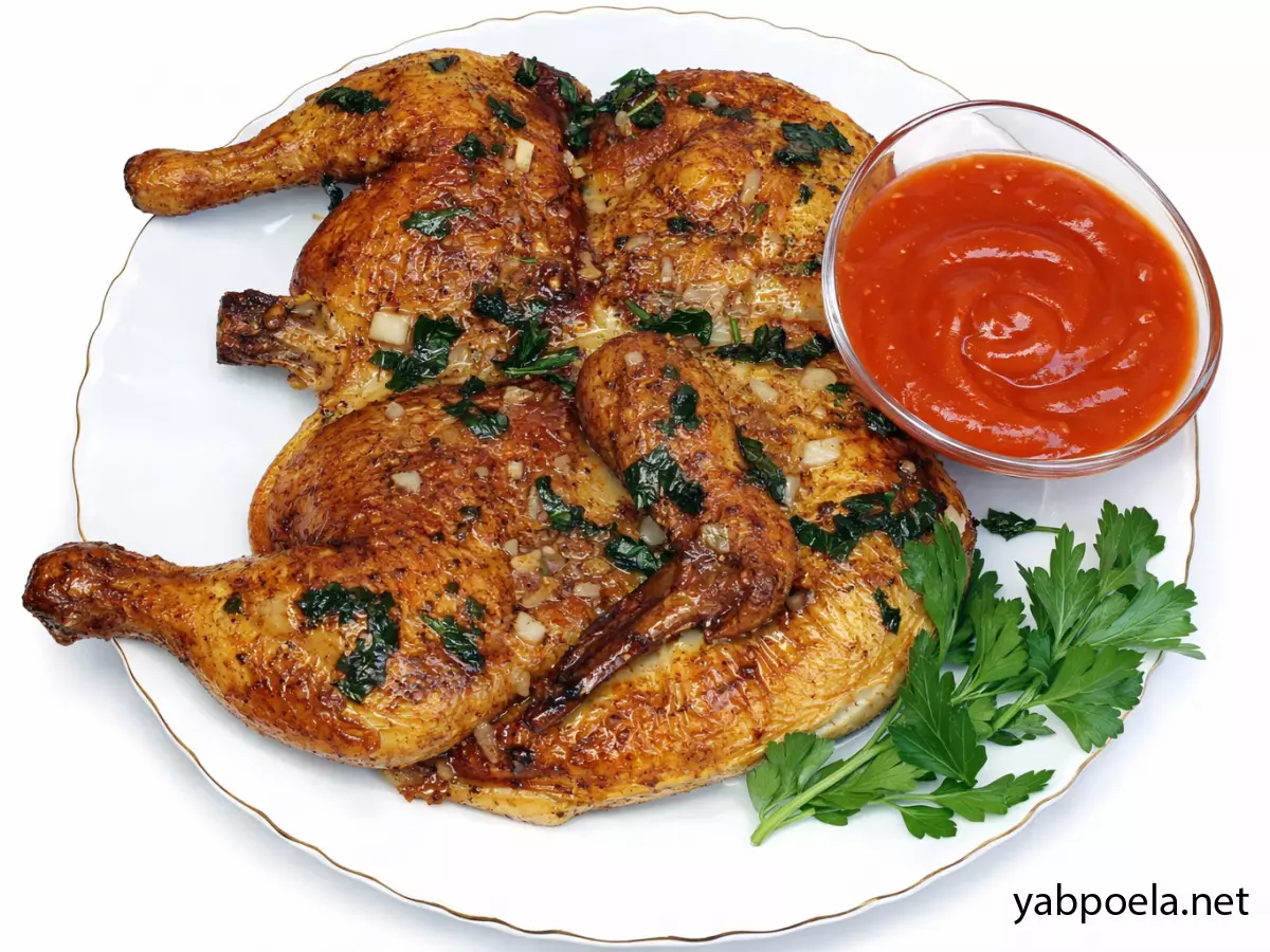 Минимум ингредиентов, простая техника и великолепный результат. Главный секрет этого рецепта — правильная подготовка тушки (перебивание суставов) и использование гнета при жарке. А финальный штрих с чесноком превращает просто жареную курицу в кулинарный шедевр.