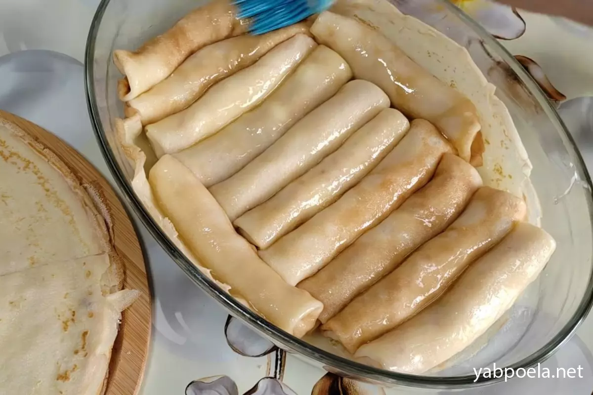 - Текстура: Блинчики "томятся", а не жарятся в духовке, поэтому температура должна быть низкой, а форма закрыта фольгой.