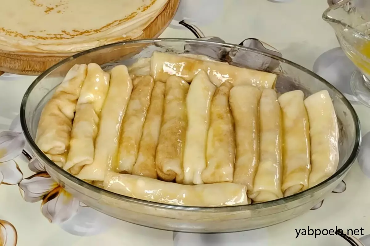 В этом рецепте мы разрезали блины пополам, чтобы получить изящные миниатюрные трубочки. Если же вам привычнее классический способ заворачивания целых налистников конвертиком (которые тоже томятся в духовке), посмотрите этот проверенный рецепт: блинчики с творогом в духовке.