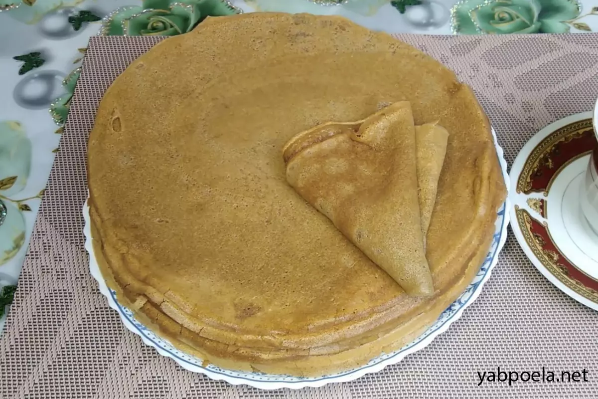 Этот рецепт относится к категории заварных блинов, так как в тесто вливается горячий кофе. Это делает их очень эластичными — они не рвутся и идеально подходят не только для завтрака, но и как основа для блинных тортов.