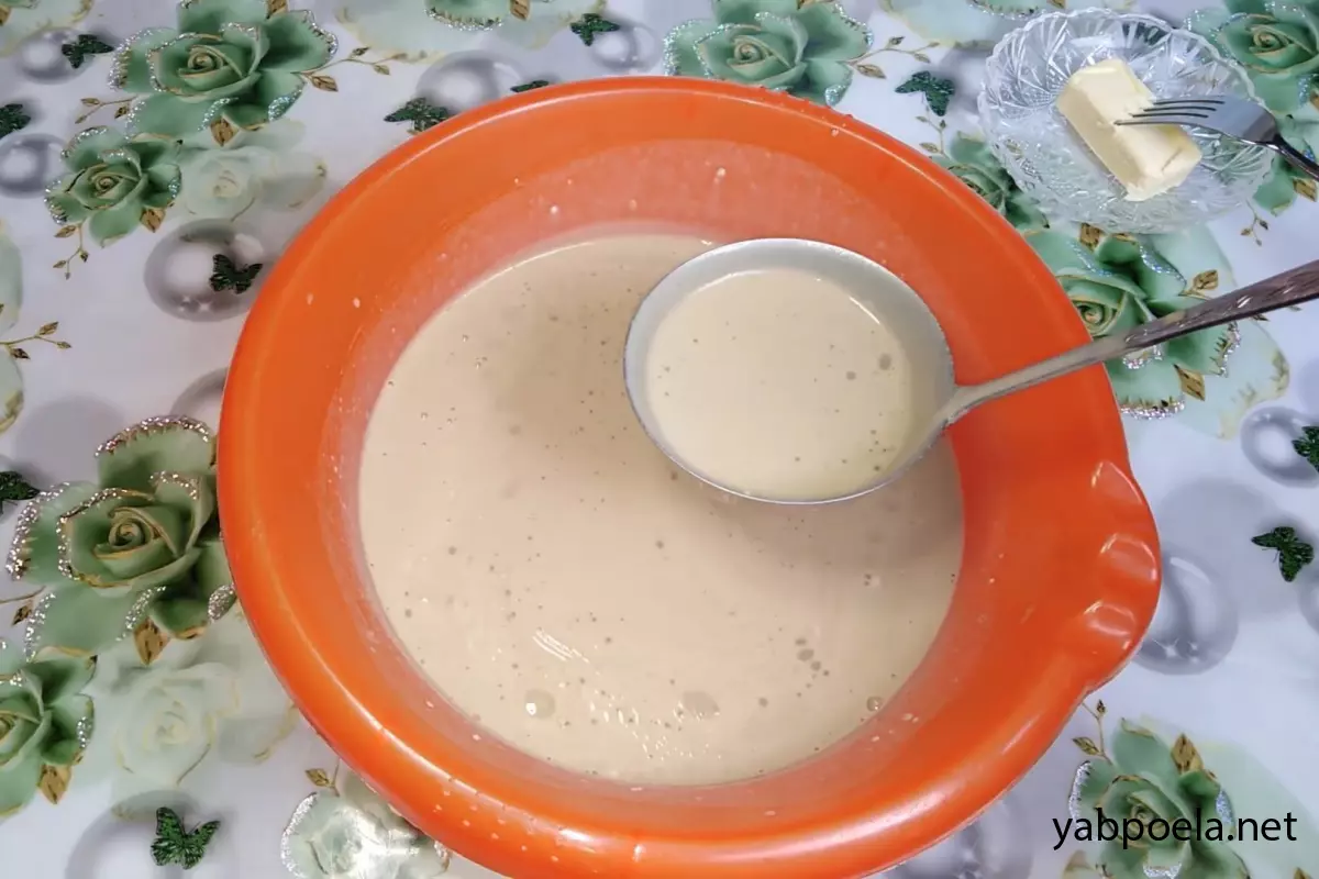Лайфхак: Перед жаркой налейте сверху на тесто еще немного масла, но не размешивайте его. Зачерпывайте половником тесто вместе с масляными разводами — так сковороду не придется смазывать перед каждым блином.
