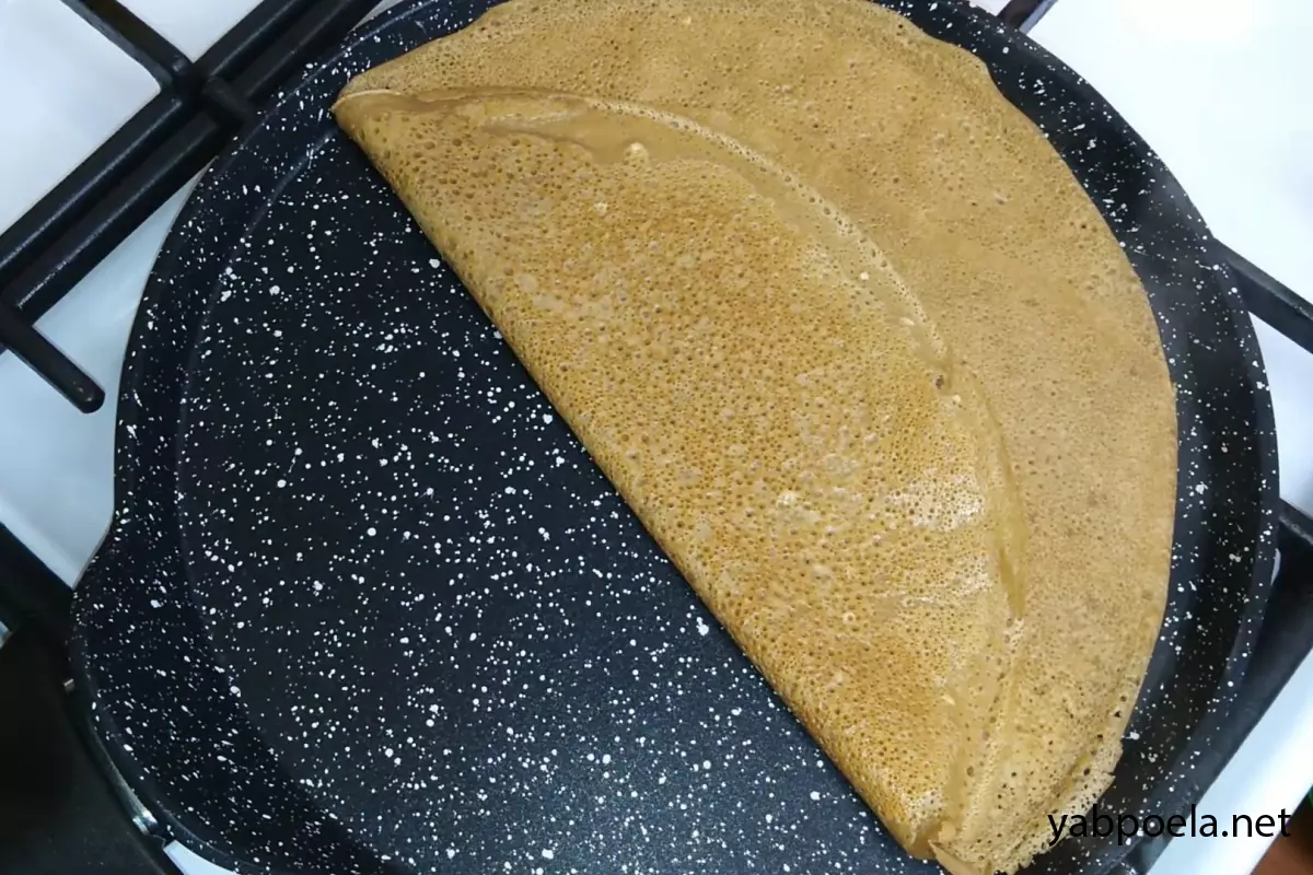 Раскалите сковороду. Налейте порцию теста (примерно полполовника), распределите тонким слоем. Жарьте на огне чуть выше среднего.