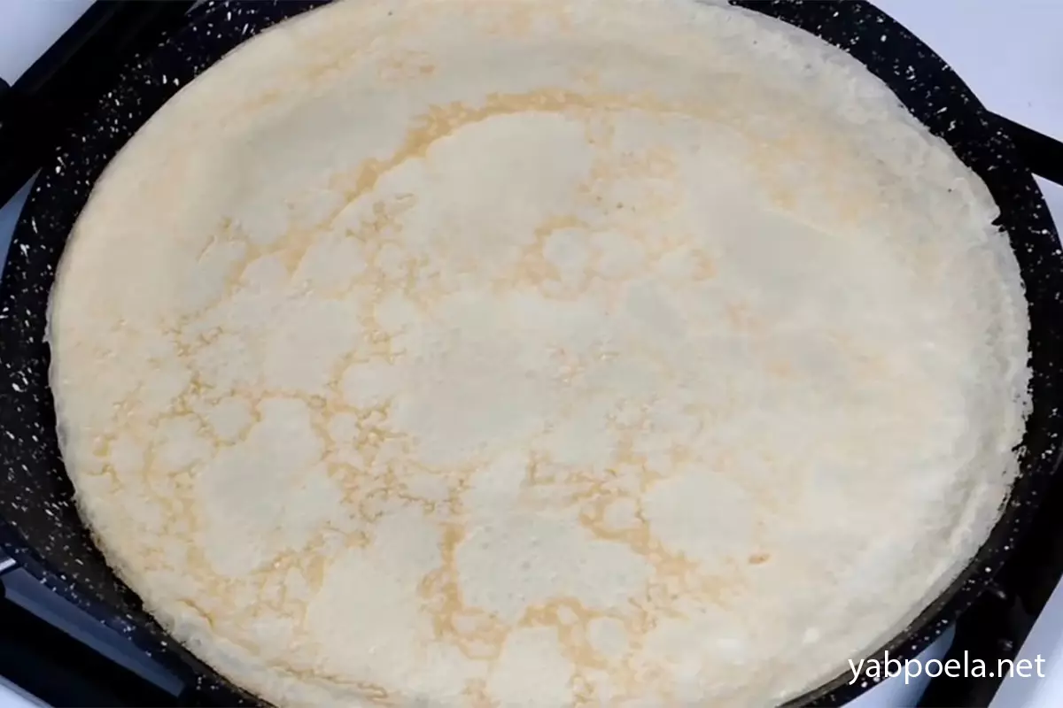 Разогрейте сковороду. Жарьте тонкие блинчики. Первая сторона должна стать золотистой, а вторую жарьте буквально 5–7 секунд (она должна остаться бледной).