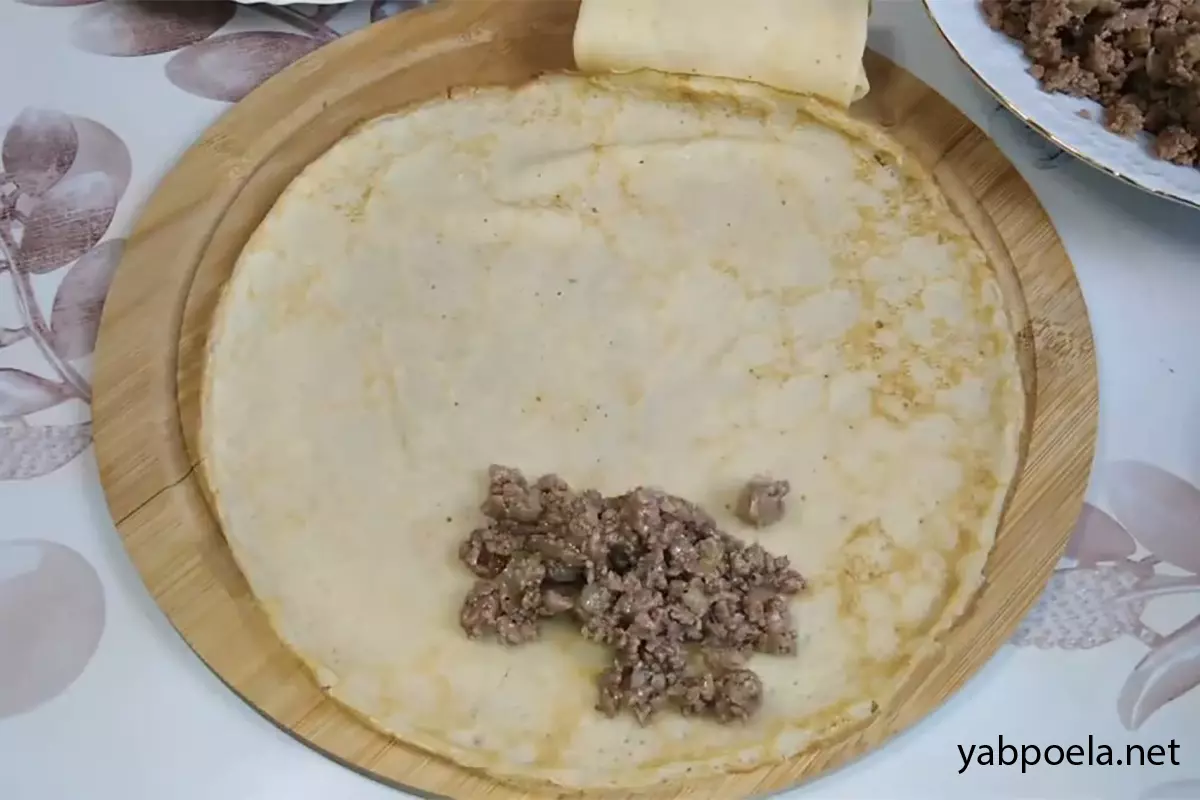 Как приготовить "Тонкие блинчики с мясом на молоке и воде"