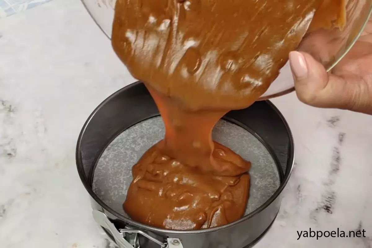 Форму для выпечки (18–20 см) застелите пергаментом и слегка смажьте маслом. Вылейте тесто в форму.