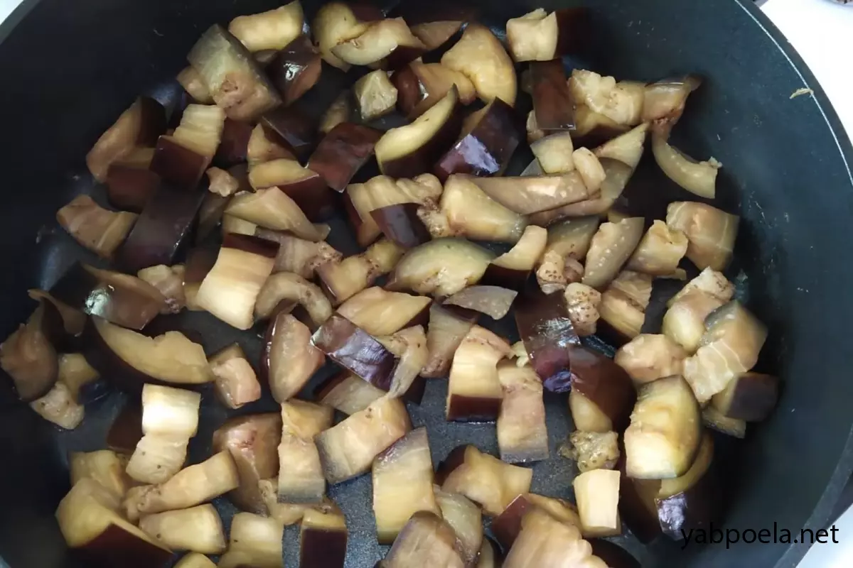 Важно: В самом конце, когда баклажаны станут мягкими, дайте оставшейся воде полностью испариться (2–3 минуты), чтобы кусочки подсушились.