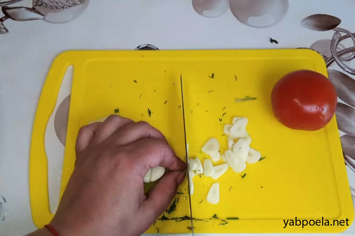 Зубчики чеснока нарежьте тонкими слайсами (или произвольно).