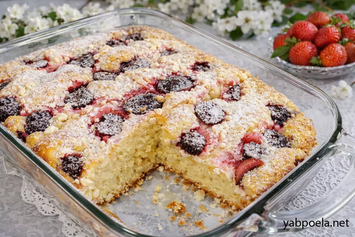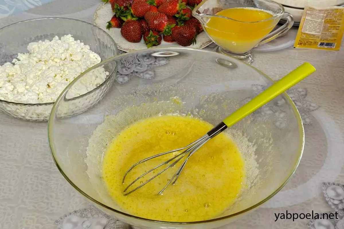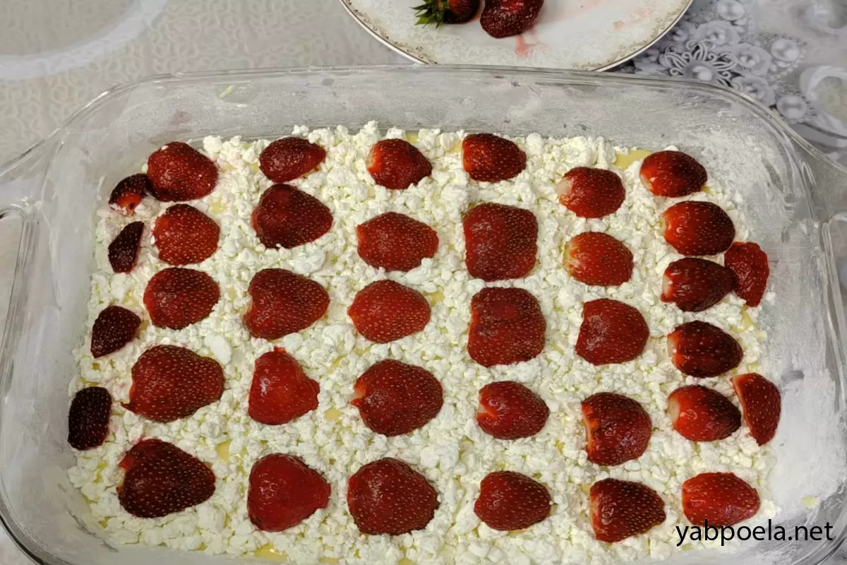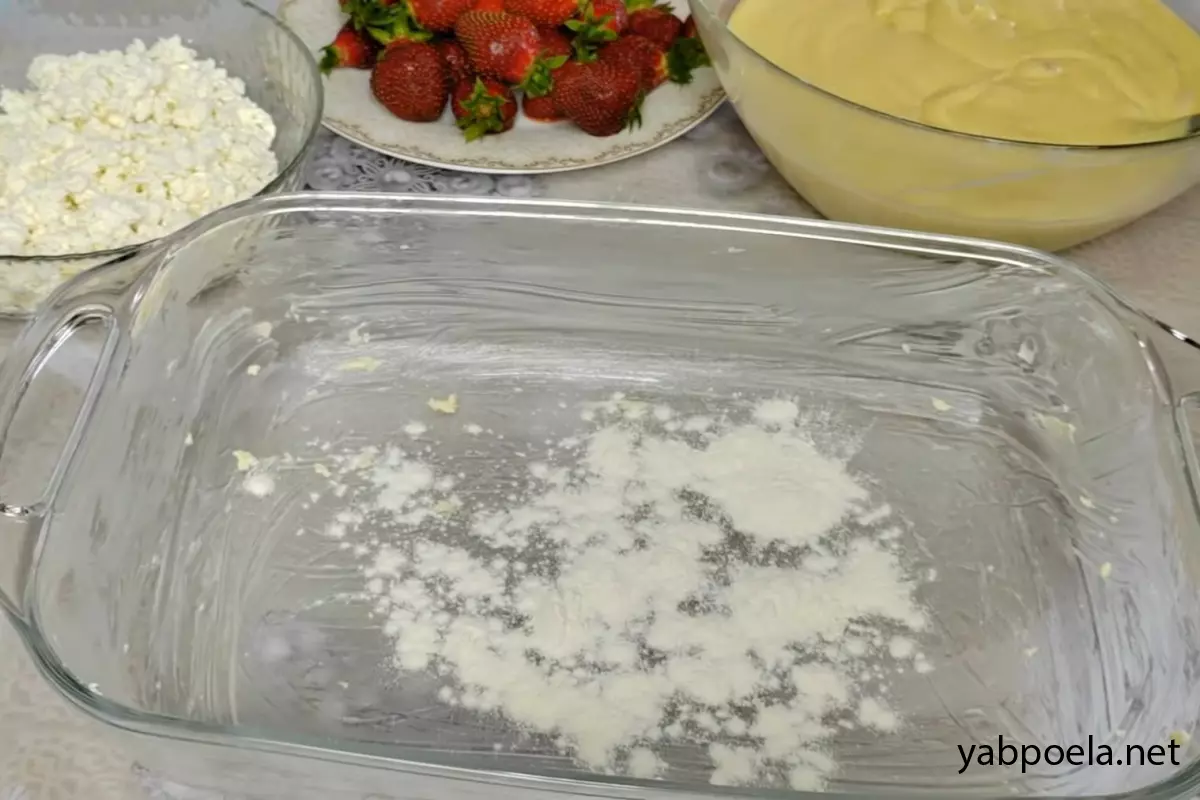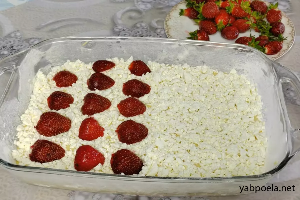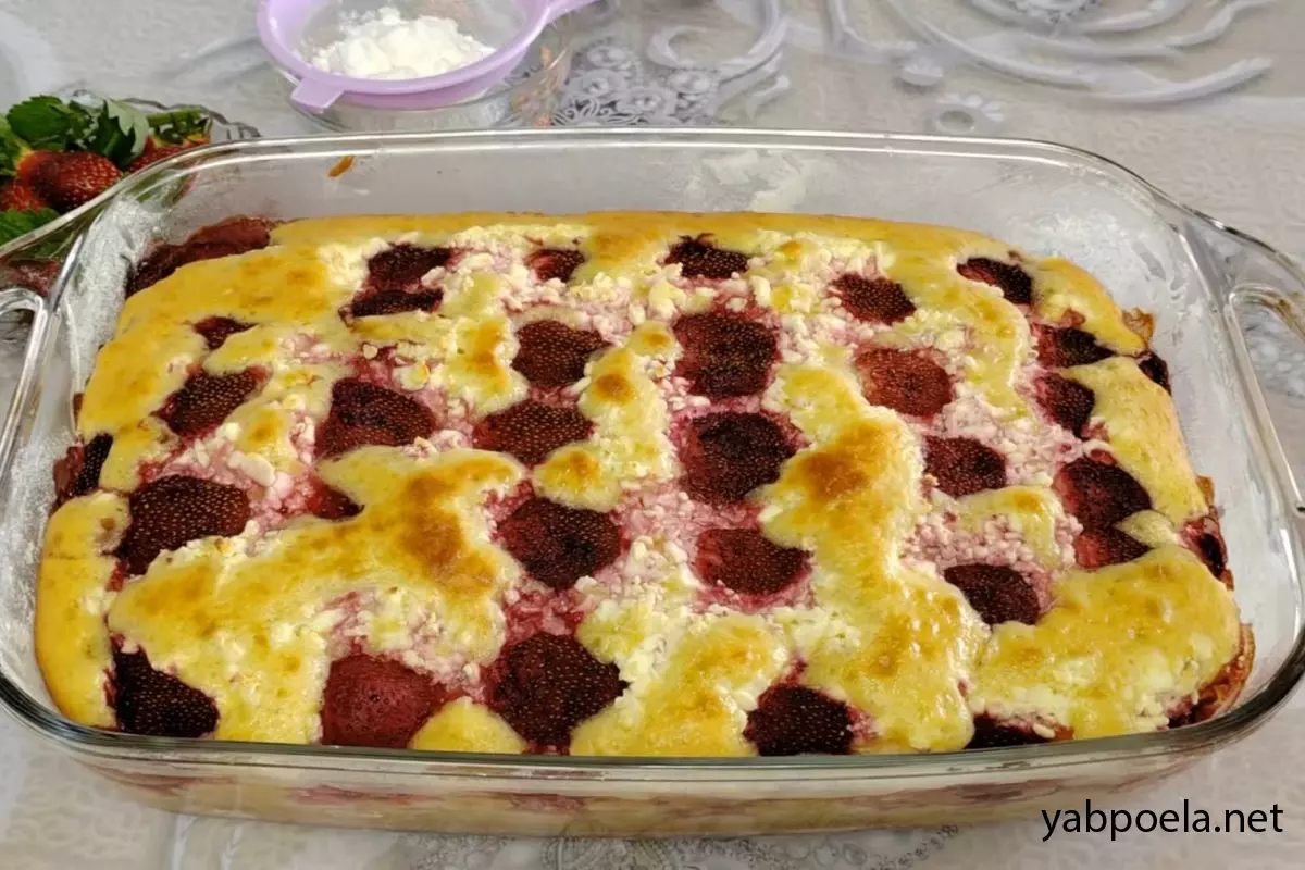 Быстрый пирог с клубникой и творогом на кефире