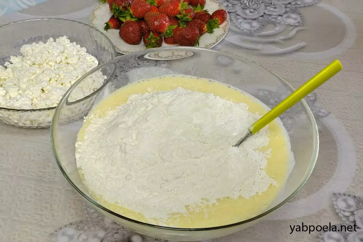 Как приготовить "Пирог с клубникой и творогом на кефире"