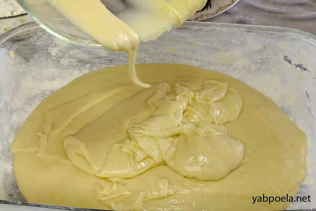 Влейте тесто в форму. Слегка потрясите её из стороны в сторону, чтобы масса распределилась ровным слоем.