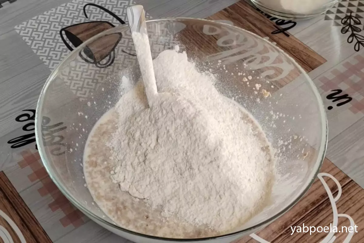 Небольшими порциями вводите просеянную муку (понадобится около 400–450 г). Замесите мягкое, воздушное сдобное тесто. Оно не должно быть забито мукой.