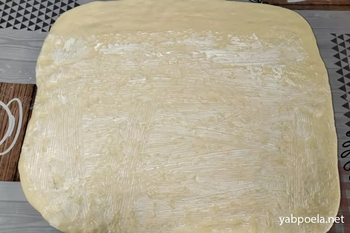 Смажьте раскатанный пласт мягким сливочным маслом.